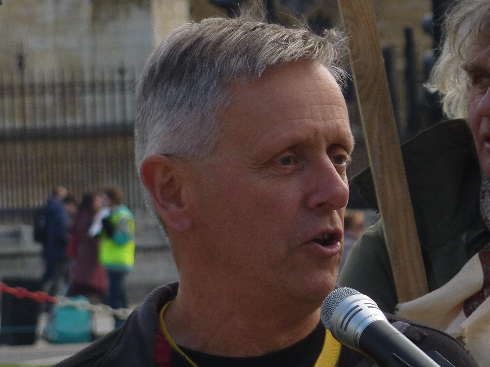 Dennis May at Westminster rally, 5 March 2019. Photo: DrillOrDrop