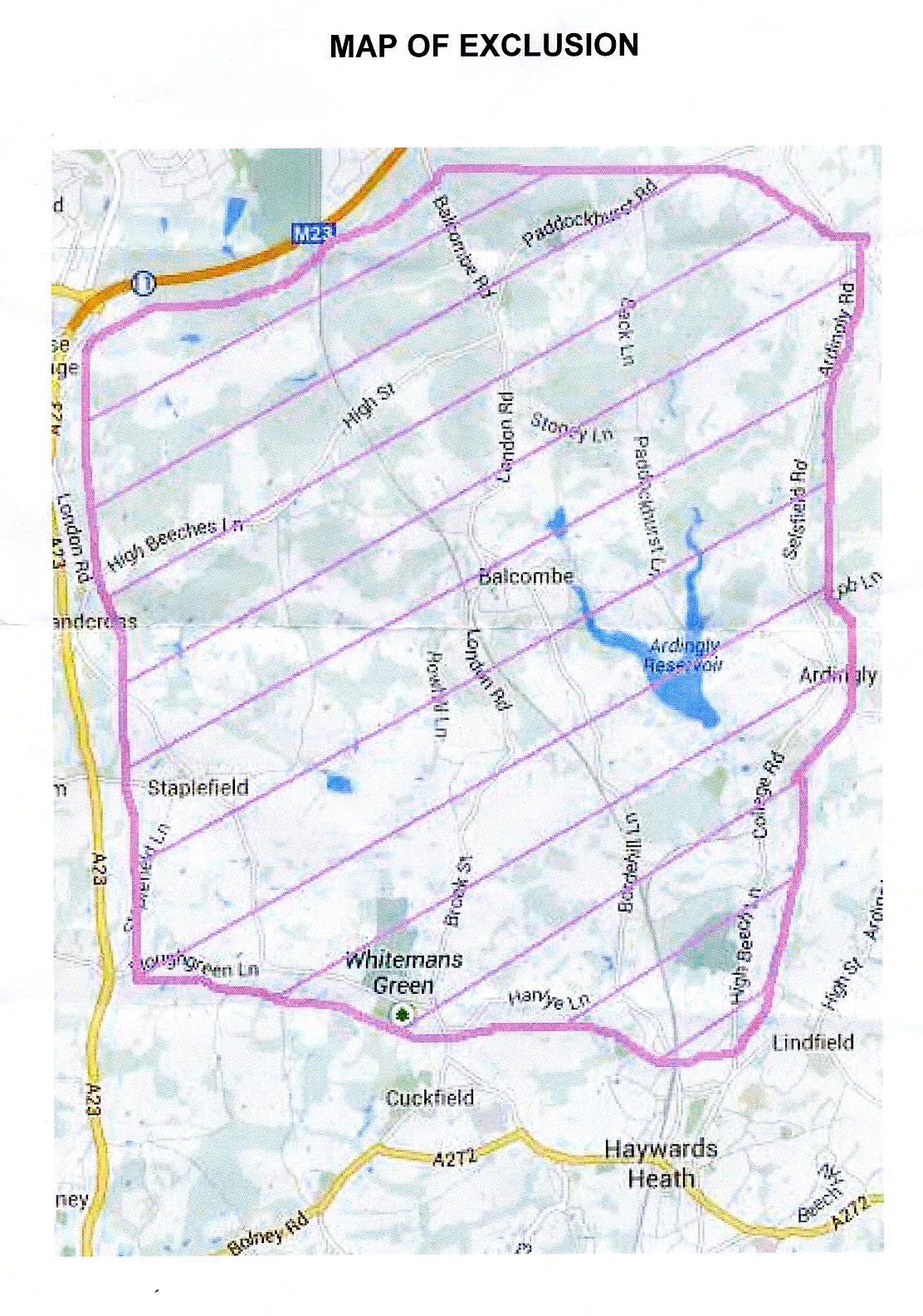 At a hearing at Crawley Magistrates Court on August 14th Sussex Police proposed a smaller exclusion zone shown in the map below.