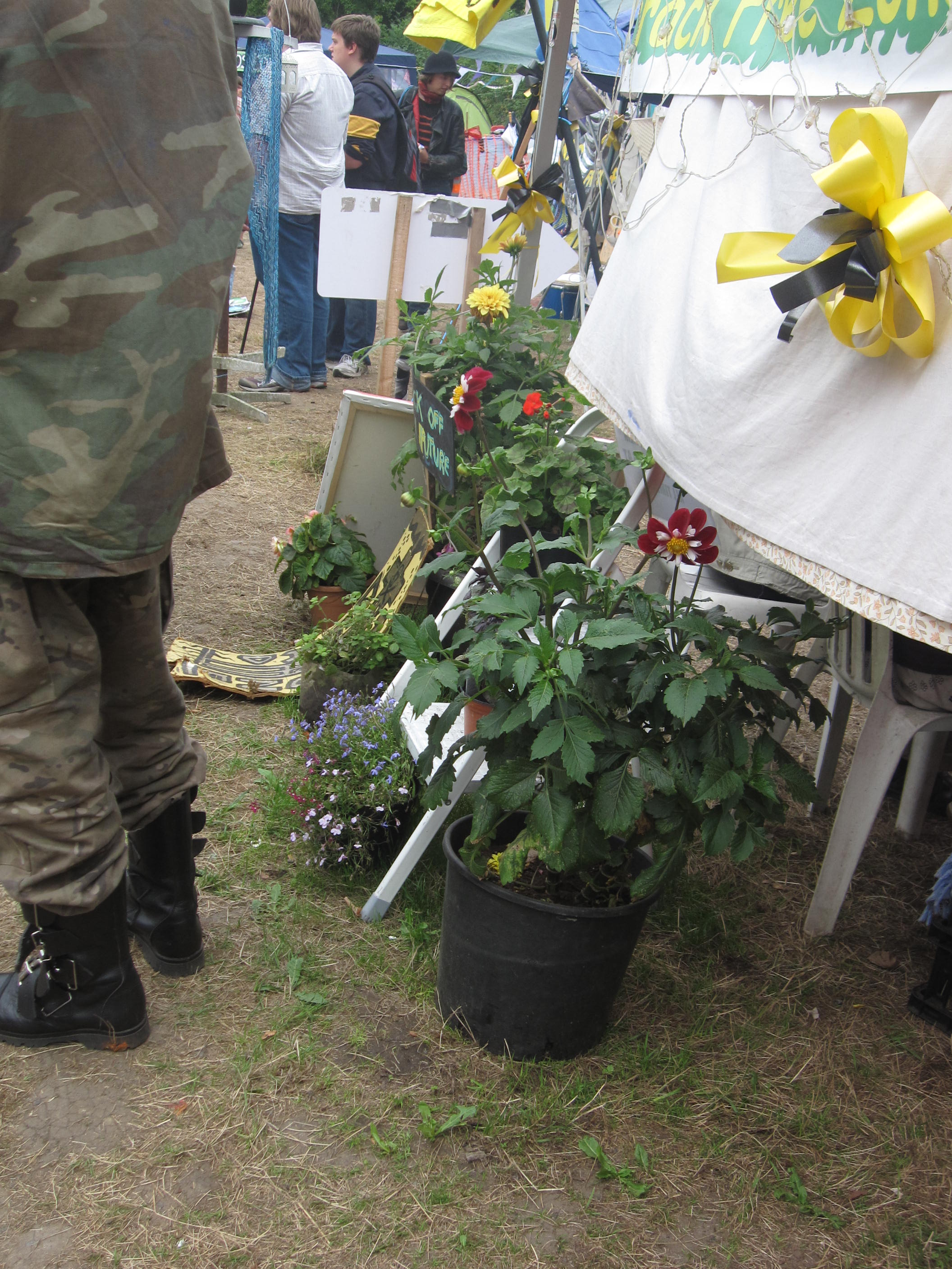 Dahlias and yellow ribbons