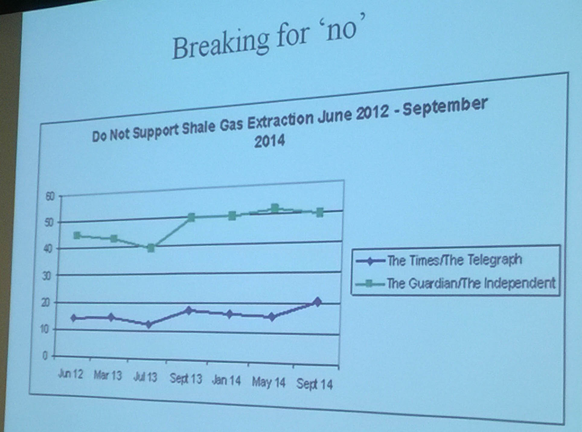 Professor Humphrey said up to July 2013, readers of the Guardian and Independent (most likely to oppose shale gas) were becoming more uncertain about shale gas.