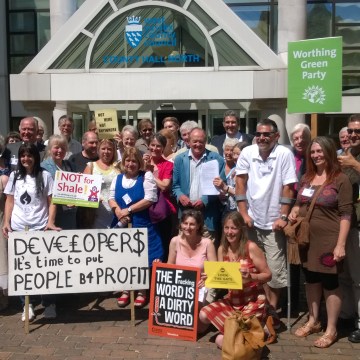 Campaigners celebrating after the refusal of planning permission to Celtique Energie in July 2014