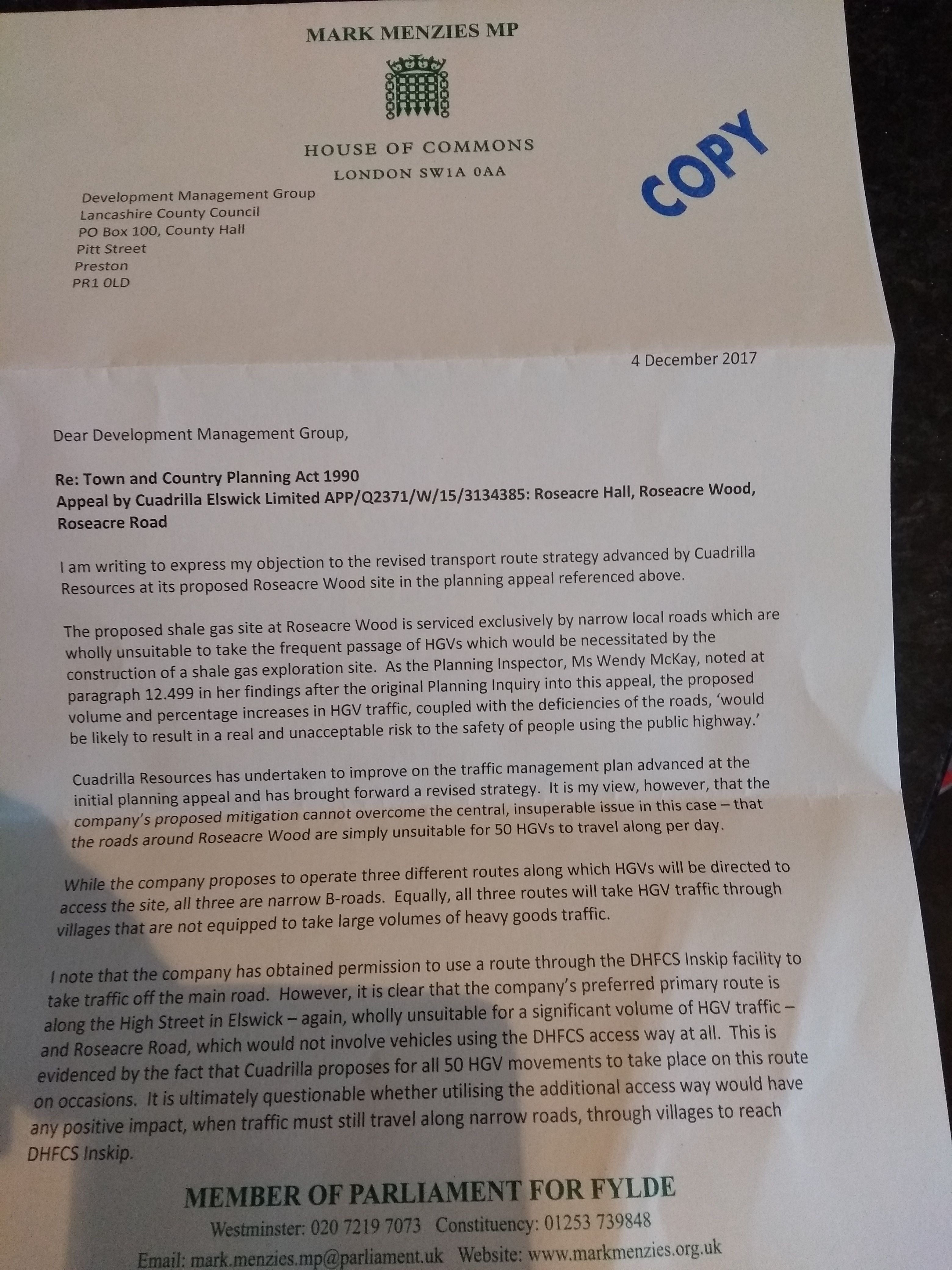 Published January 10, 2018 at 3120 × 4160 in Two Lancashire Tory MPs object to Cuadrilla’s revised plans for fracking at Roseacre Wood ‹ Return to post Add a comment Cancel reply Δ