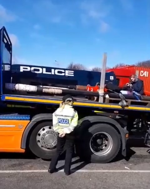 Published March 27, 2018 at 480 × 606 in Fracking lorry protest ends after 24 hours Lorry surfing protest at Forton services on M6, 26 March 2018. Photo: Still from video by Bob Dennett ‹ Return to post Add a comment Cancel reply Δ