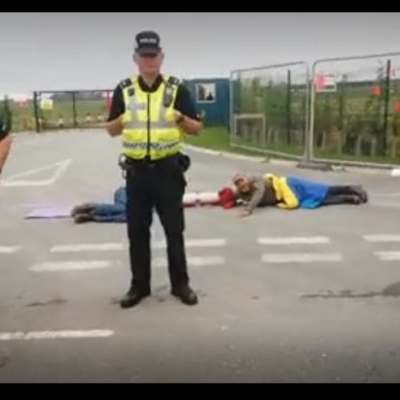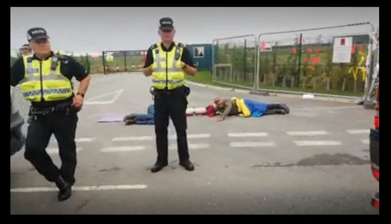 Published July 24, 2018 at 790 × 452 in Updated: Cuadrilla to take action against first challenge to fracking protest injunction Lock-on protest, Cuadrilla’s Preston New Road site, near Blackpool, 24 July 2018. Photo: from video by Tina Rothery ‹ Return to post Add a comment Cancel reply Δ