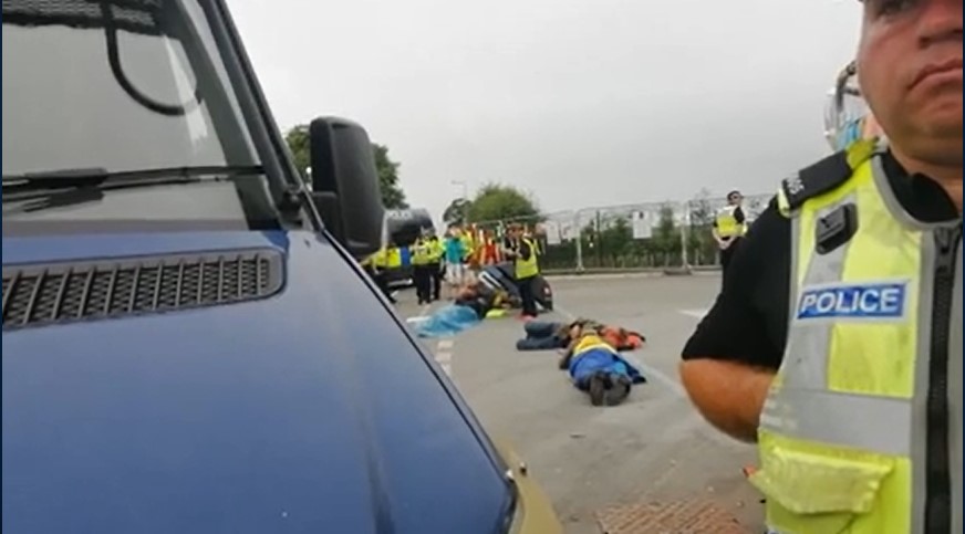Published July 24, 2018 at 872 × 483 in Updated: Cuadrilla to take action against first challenge to fracking protest injunction Lock-on protest outside Cuadrilla’s shale gas site at Preston New Road, near Blackpool, 24 July 2018. Photo: Tina Rothery ‹ Return to post Add a comment Cancel reply Δ