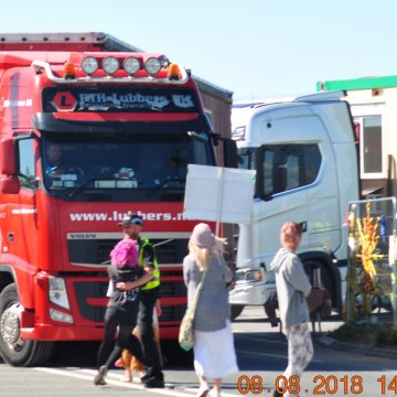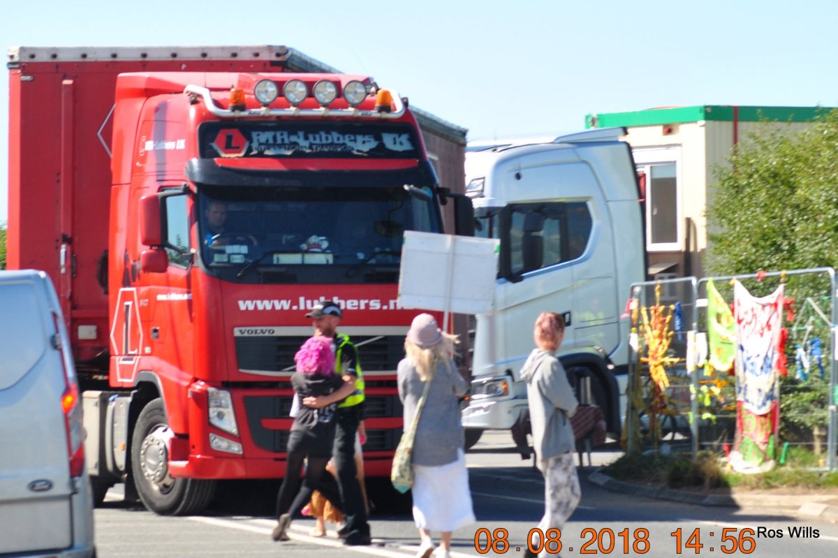 Heavy goods vehicles visiting Cuadrilla’s Preston New Road shale gas site on 8 August 2018. Photo: Ros Wills