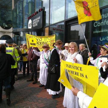 Published October 1, 2018 at 2048 × 1536 in October 2018 drilling headlines Anti-fracking campaigners dressed as suffragettes at the Conservative Party Conference in Birmingham, 1 October 2018. Photo: Friends of the Earth ‹ Return to post Add a comment Cancel reply Δ