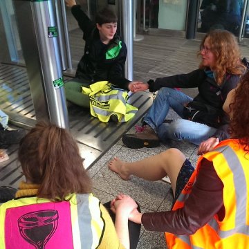 Climate change campaigners blockade the entrance to the Department of Business, Energy and Industrial Strategy, 12 November 2018. Photo: Christian Climate Action