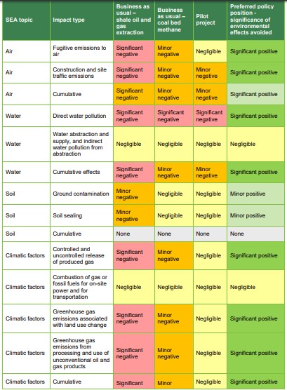 Summary of impacts from allowing fracking (“Business as usual”), a pilot project and the Scottish government’s preferred position not support fracking. Source: Scottish government consultation