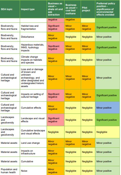 Summary of impacts from allowing fracking (“Business as usual”), a pilot project and the Scottish government’s preferred position not support fracking. Source: Scottish government consultation