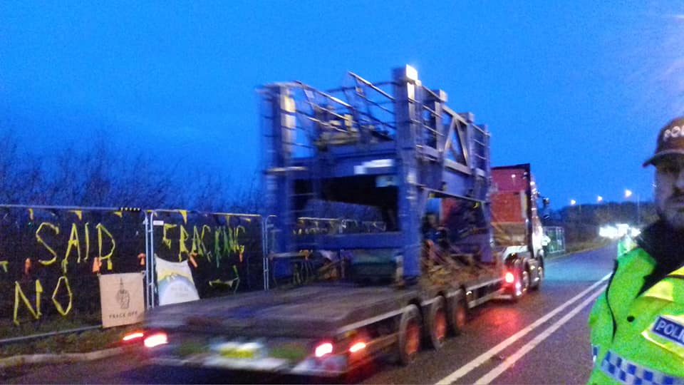Published January 10, 2019 at 960 × 540 in Cuadrilla focusses on single shale well – with under 11 months left for more drilling and fracking Fracking equipment leaving Cuadrilla’s shale gas site at Preston New Road, 7 January 2019. Photo: Daniel Huckley-Blythe ‹ Return to post Add a comment Cancel reply Δ