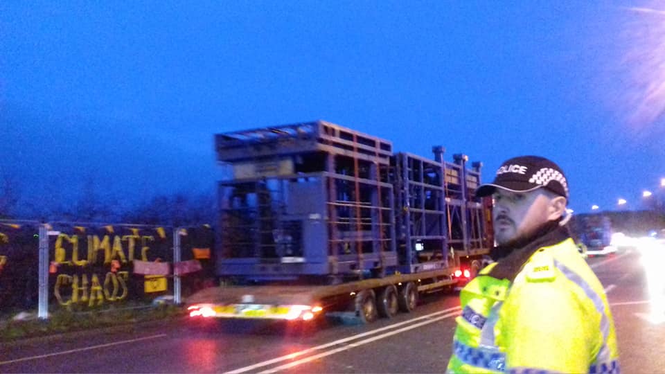 Published January 10, 2019 at 960 × 540 in Cuadrilla focusses on single shale well – with under 11 months left for more drilling and fracking Fracking equipment leaving Cuadrilla’s shale gas site at Preston New Road, 7 January 2019. Photo: Daniel Huckley-Blythe ‹ Return to post Add a comment Cancel reply Δ
