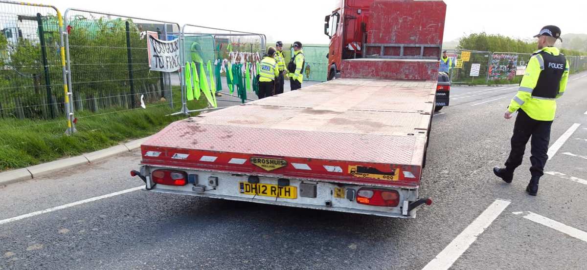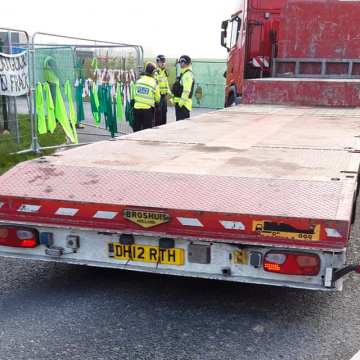 Published April 17, 2019 at 1387 × 640 in Photo post: Equipment leaves Cuadrilla’s fracking site Flatbed lorry arriving to collect equipment from Cuadrilla’s Preston New Road fracking site, 17 April 2019. Photo: Chris Whynott ‹ Return to post Add a comment Cancel reply Δ