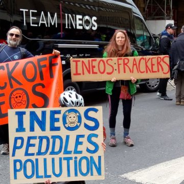 Published May 7, 2019 at 2040 × 1150 in Updated picture post: Protests against Team Ineos at Tour de Yorkshire Team Ineos protest, Halifax, 5 May 2019. Photo: Sarah Crane ‹ Return to post Add a comment Cancel reply Δ