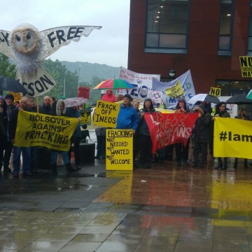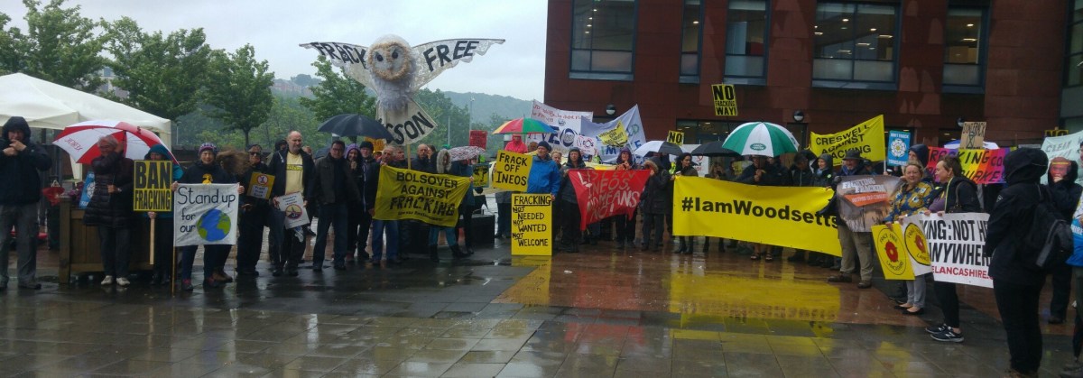 Published June 11, 2019 at 2124 × 742 in Shale gas opponents protest outside inquiry at Ineos drilling plans Demonstration outside public inquiry into Ineos shale gas plans at Woodsetts, 11 June 2019. Photo: DrilllOrDrop ‹ Return to post Add a comment Cancel reply Δ