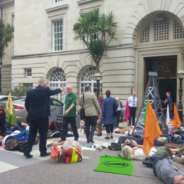 “Climate die-in” outside Surrey County Council, 9 July 2019. Photo: DrillOrDrop