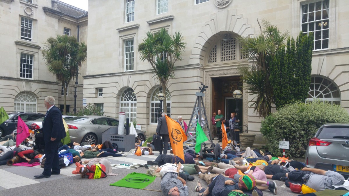 “Climate die-in” outside Surrey County Council, 9 July 2019. Photo: DrillOrDrop