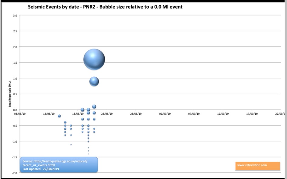 Published August 22, 2019 at 944 × 590 in PNR tremor tracker 2019 Relative size of earth tremors caused by fracking at Preston New Road since 15 August 2019. Refracktion ‹ Return to post Add a comment Cancel reply Δ
