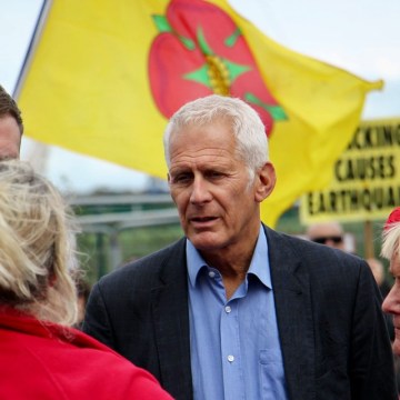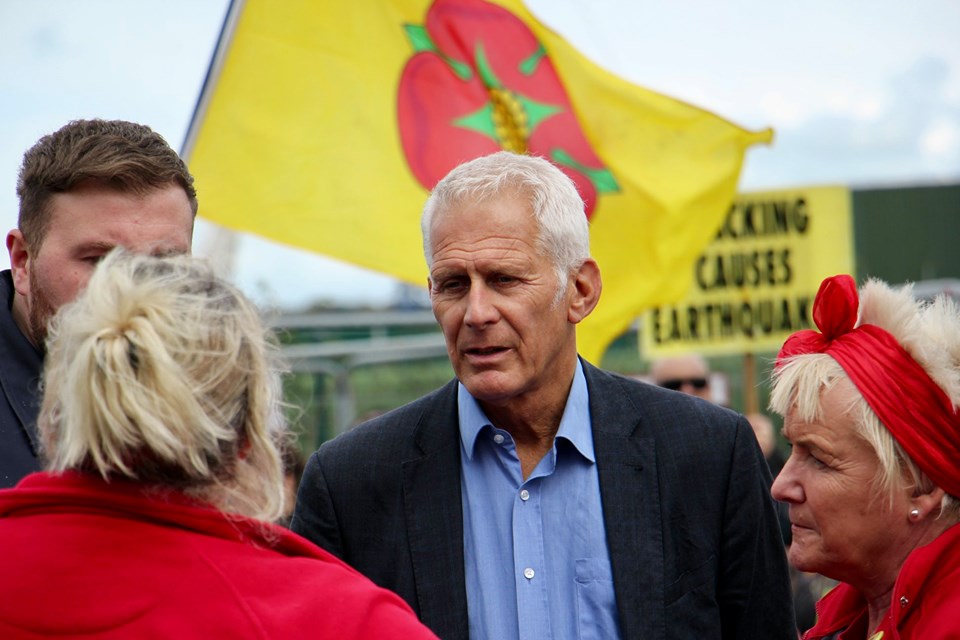 Blackpool South MP Gordon Marsden at rally outside Cuadrilla’s Preston New Road fracking site, 31 August 2019. Photo: Refracktion