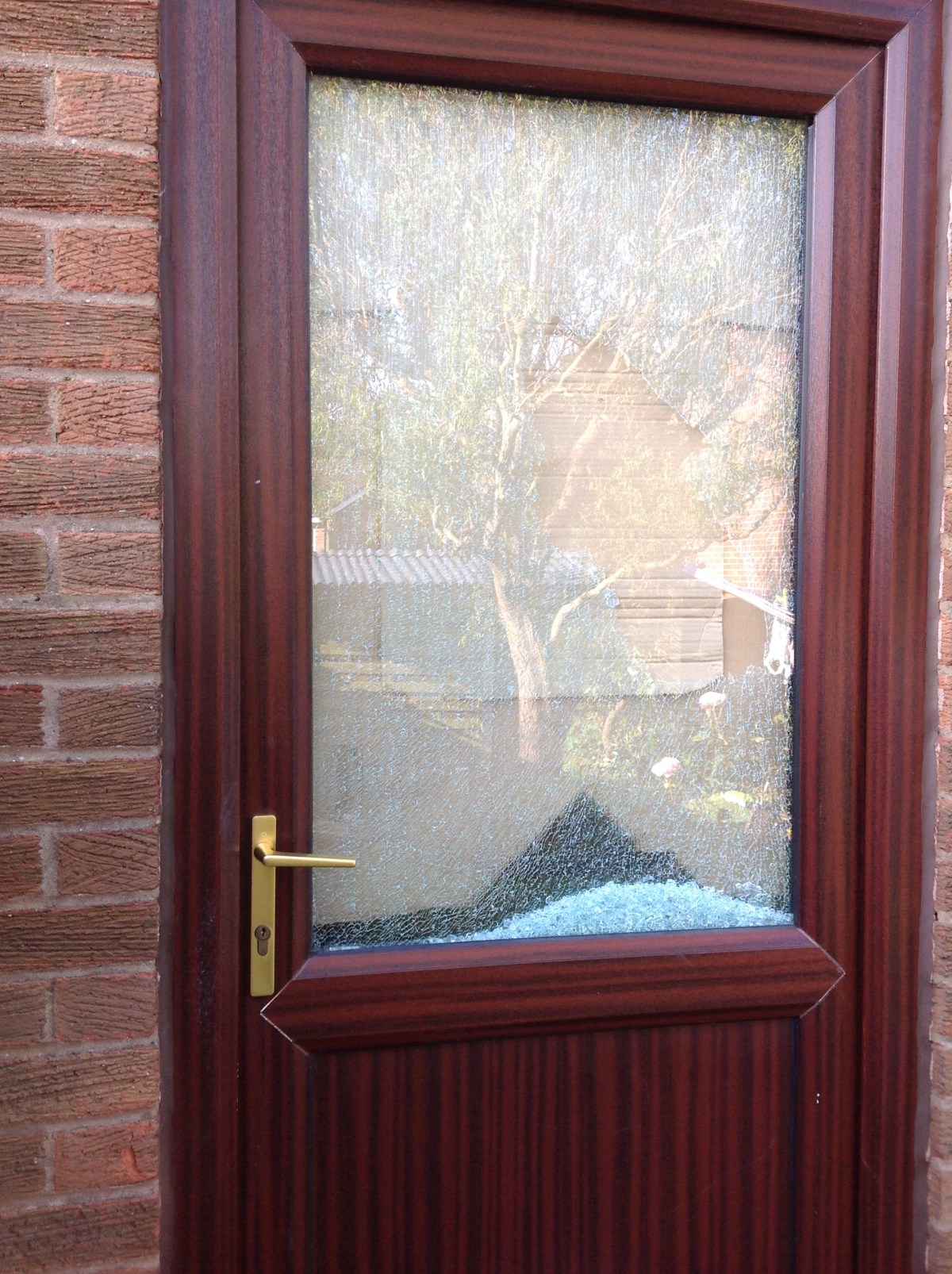 Shattered glass panel. Cuadrilla did not accept liability for the damage. Photo: Used with the owner’s consent