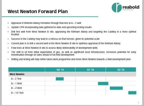 Published October 7, 2019 at 480 × 354 in Reabold outlines drilling plans at second West Newton site in early 2020 Extract from Reabold Resources presentation ‹ Return to post Add a comment Cancel reply Δ