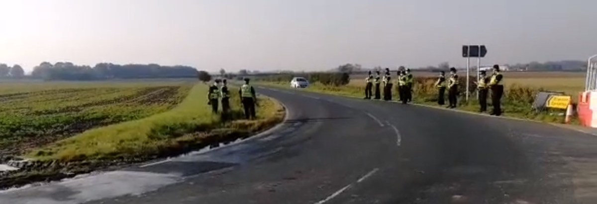 “A group of opponents have pledged to monitor operations at the West Newton-B site. They reported two cranes on the site today and more than 12 police officers on duty on the access route.”