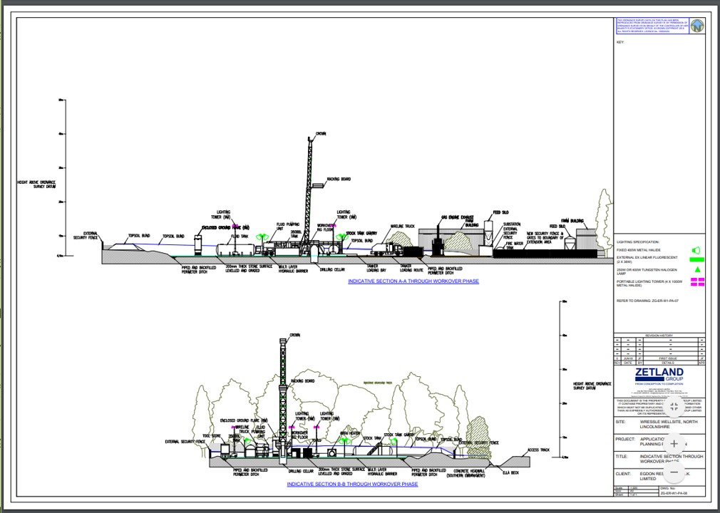 Cross-section of site during workover of the Wressle well. Source: Egdon Resources planning application to North Lincolnshire Council