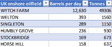 Top ranking onshore oil producing fields in June 2020. Source: OGA