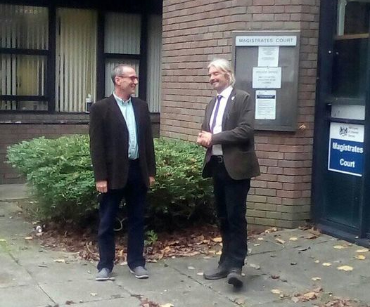 Lindsay Parkin (left) and Alistair Sandell outside Staines Magistrates Court. Photo: Used with the owner’s consent