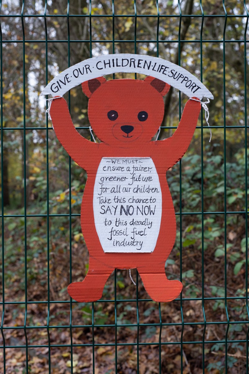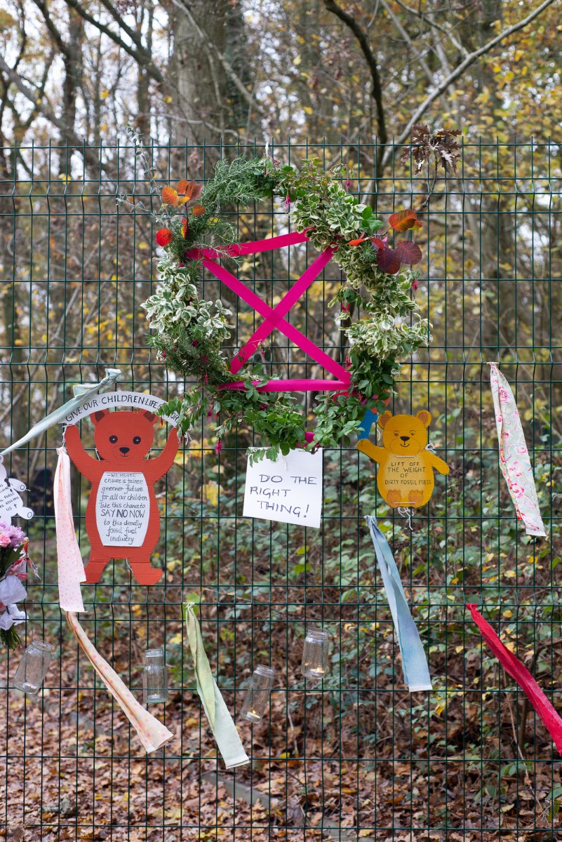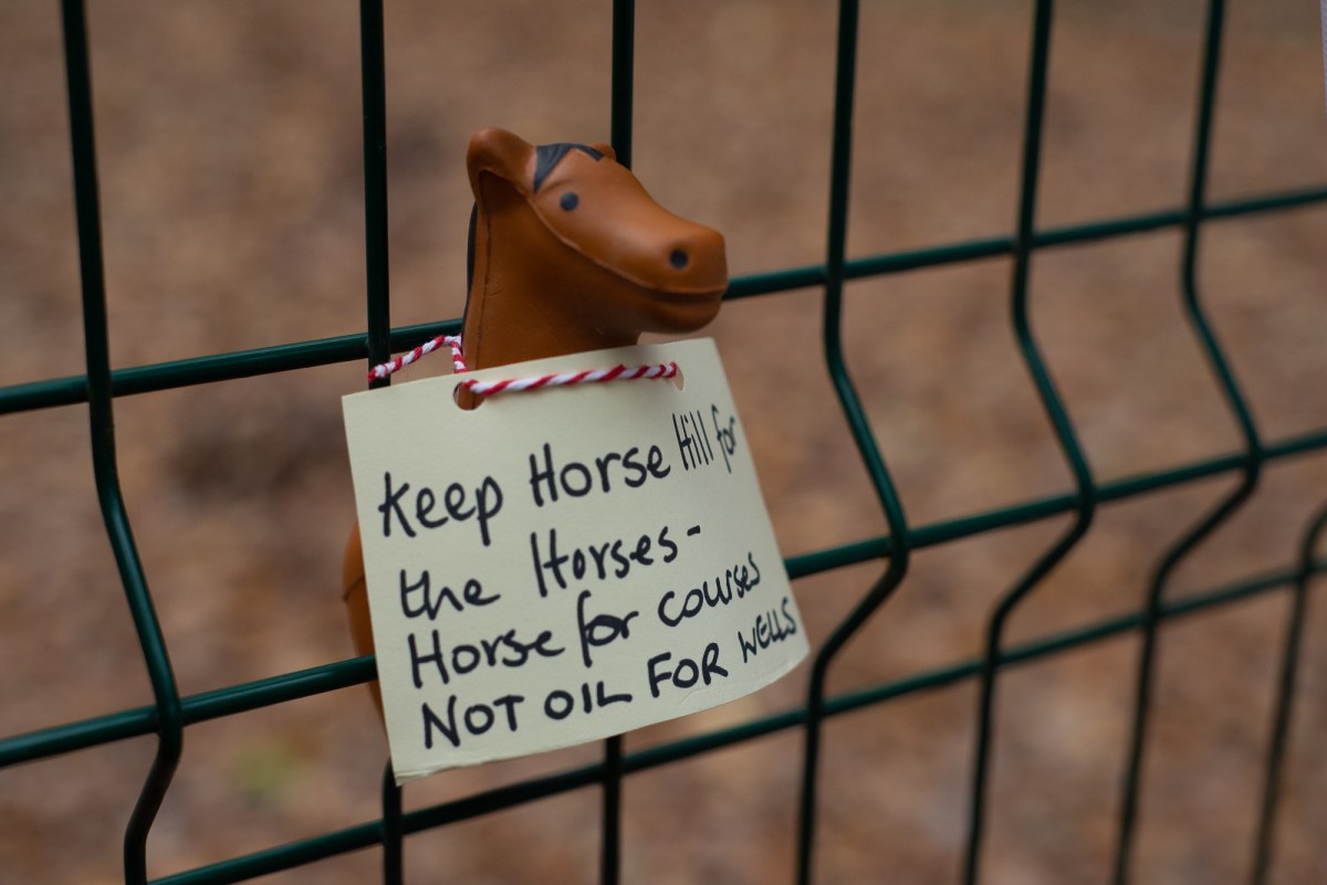 People attending the vigil said they were expressing their opposition to the Horse Hill site by attaching tokens and messages to the gate.