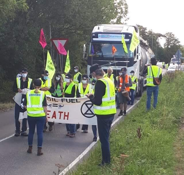Protest near the Horse Hill oil site in Surrey protest, 3 August 2020. Photo: Used with the owner’s consent