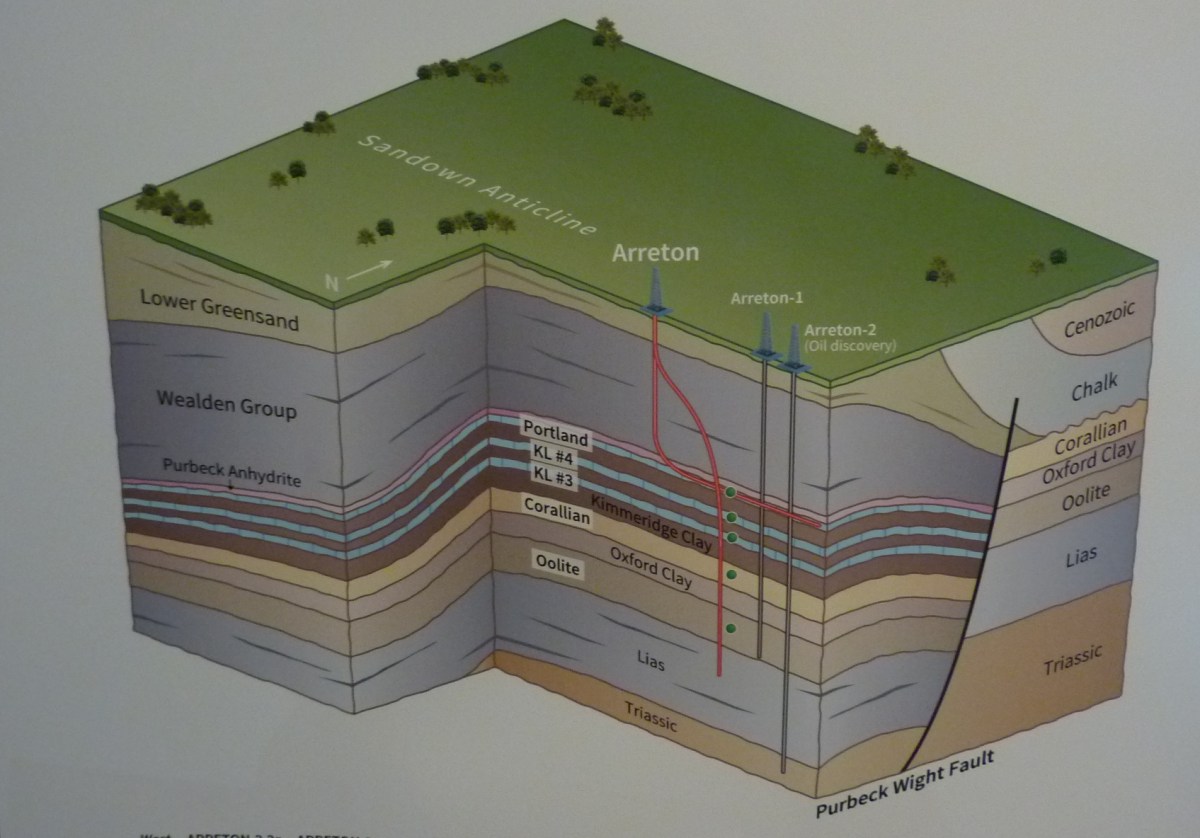 UKOG wants to drill one vertical and one sidetrack well at Arreton. They would explore for oil in the Portland limestone and other deeper formations. The application does not include high volume hydraulic fracturing.
