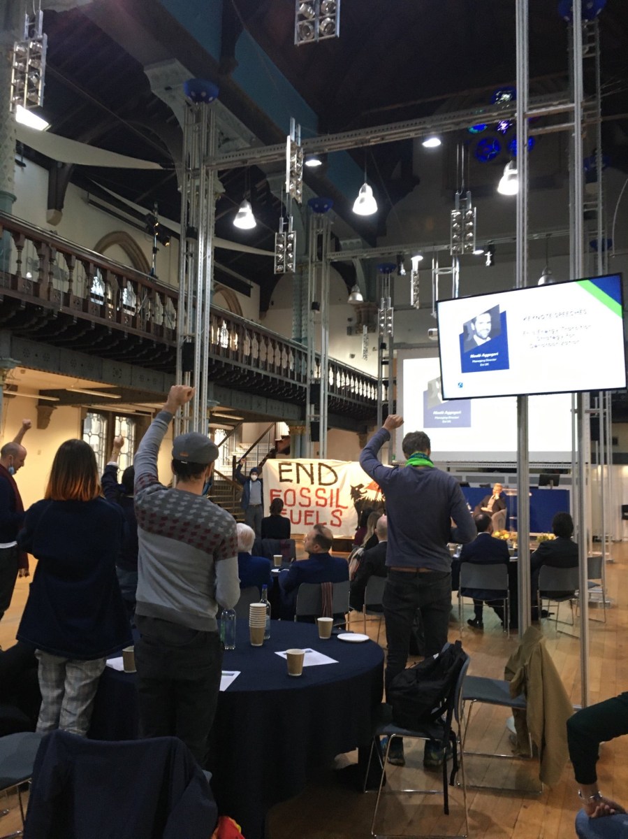 Activists from Glasgow Calls Out Polluters and Fridays for Future Italy criticised Eni’s climate record, its activities in Mozambique and plans to achieve net zero.