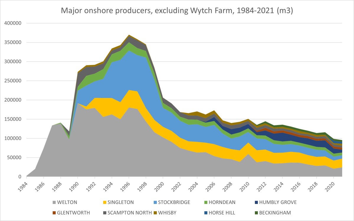 The next nine highest ranking producers accounted for 95,449m3 – below 11% of the onshore total. As in previous years, these fields were either in the Weald in southern England or in Lincolnshire.