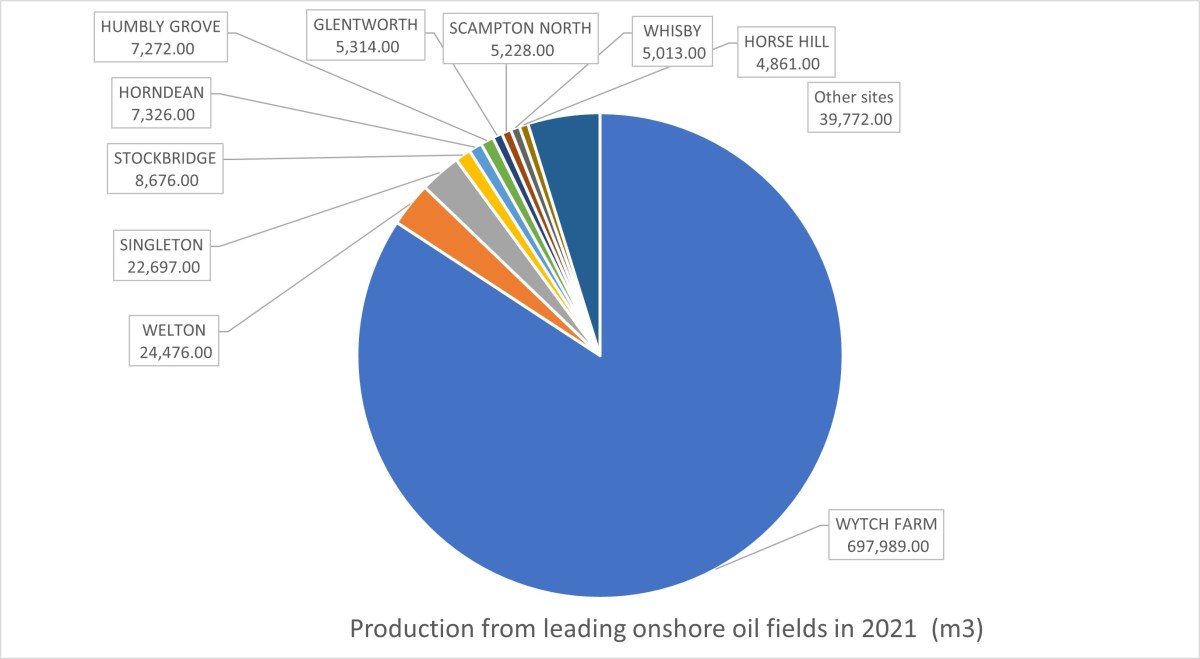 The remaining six companies produced 21,562 or 2.6% of the UK onshore total in 2021. They were ranked: EP UK Investments (Humbly Grove), Britnrg Limited (Whisby), UKOG (Horse Hill), Europa Oil & Gas (Crosby Warren and West Firsby), Egdon Resources (Fiskerton Airfield and Keddington) and Onshore Oilfield Services Limited (Farleys Wood).