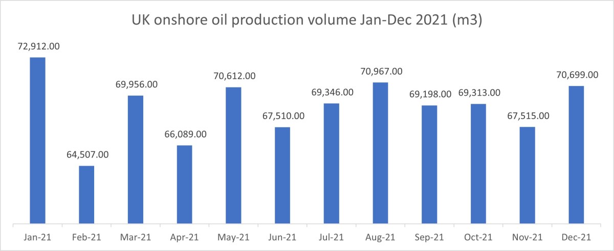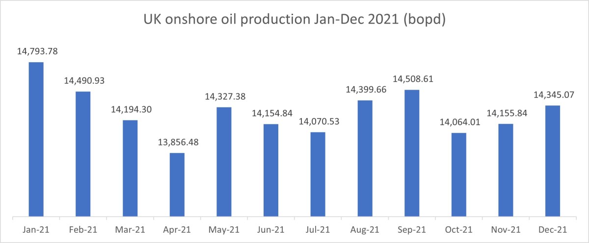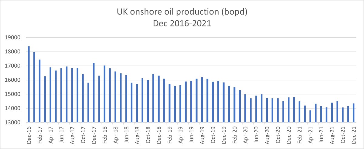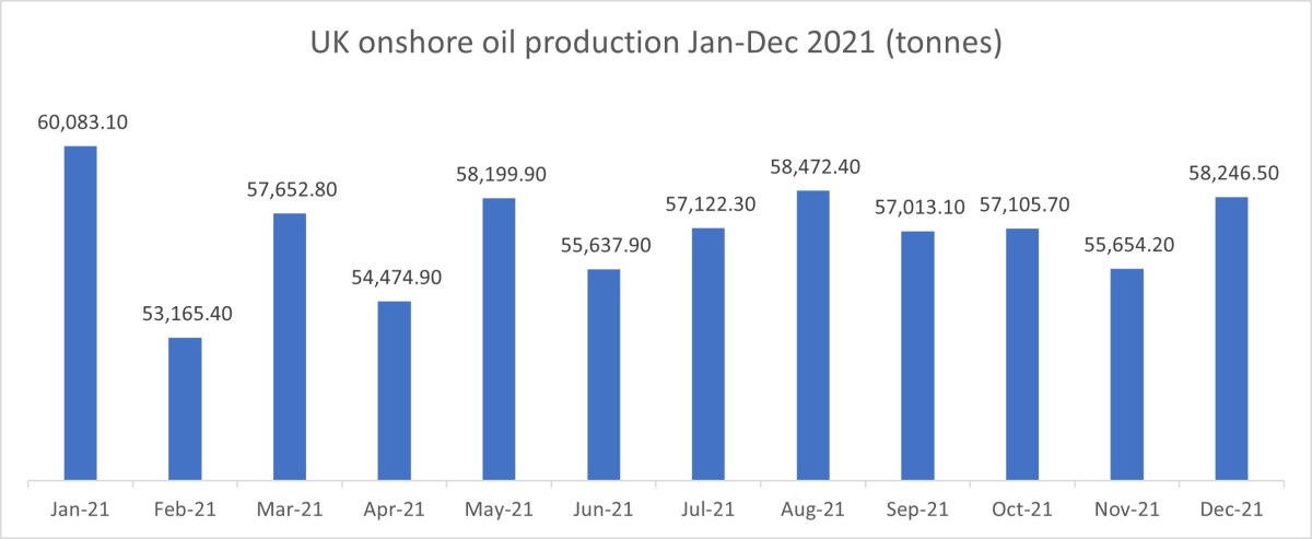 Official figures from the industry regulator shows that onshore oil production was down nearly 5% on 2020.