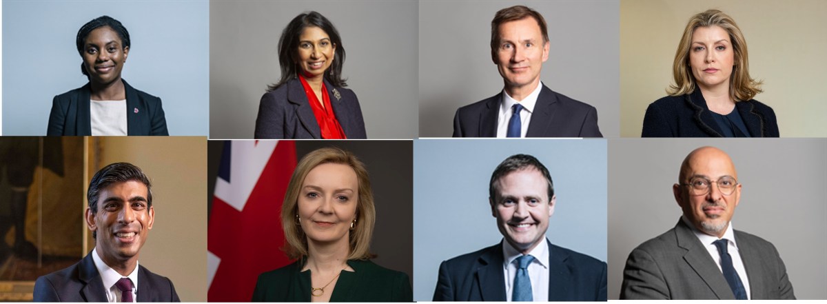 Kemi Badenoch, Suella Braverman, Jeremy Hunt, Penny Mordaunt, Rishi Sunak, Liz Truss, Tom Tugendhat and Nadhim Zahawi, each gained at least 30 nominations.
