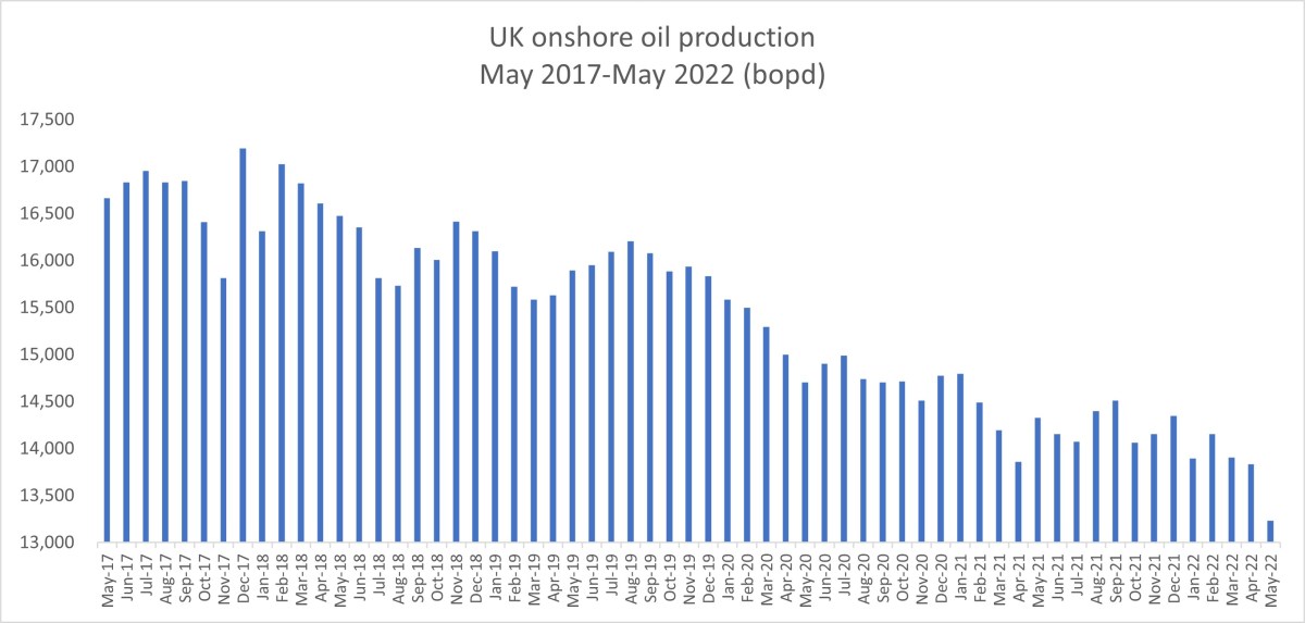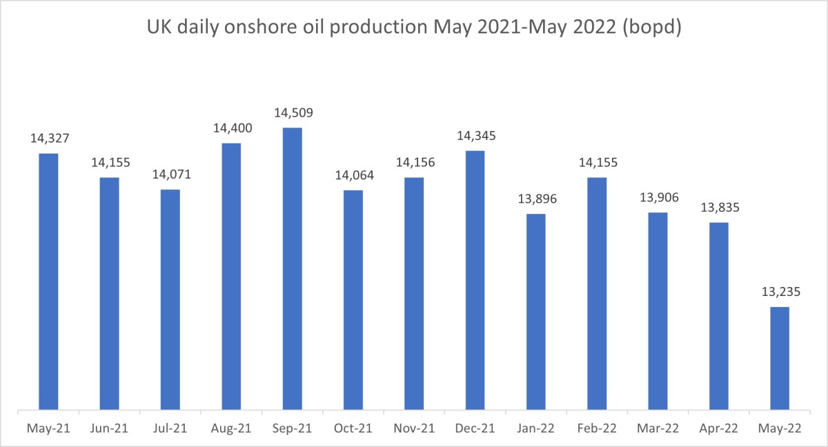 DrillOrDrop’s review of the latest UK onshore oil data for May 2022: daily production at 30+ year low