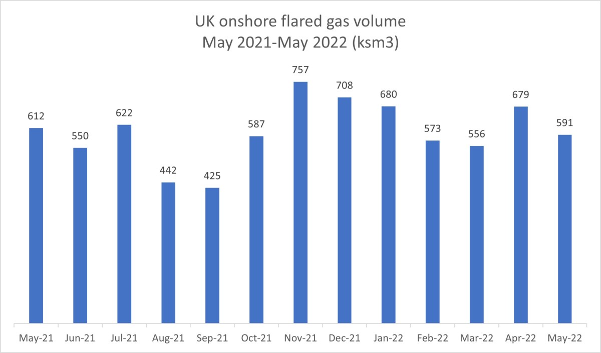 - The volume of gas flared on UK onshore oilfields was down 12%