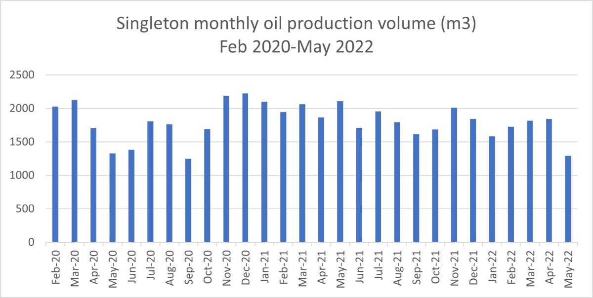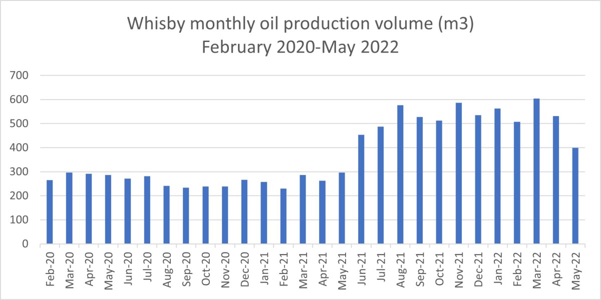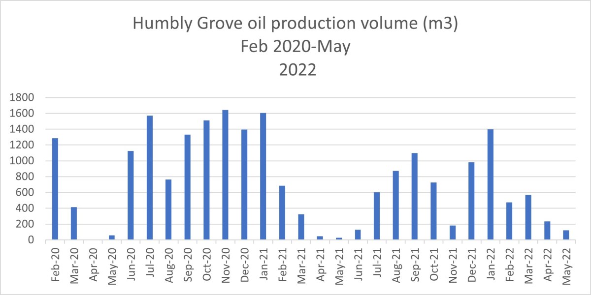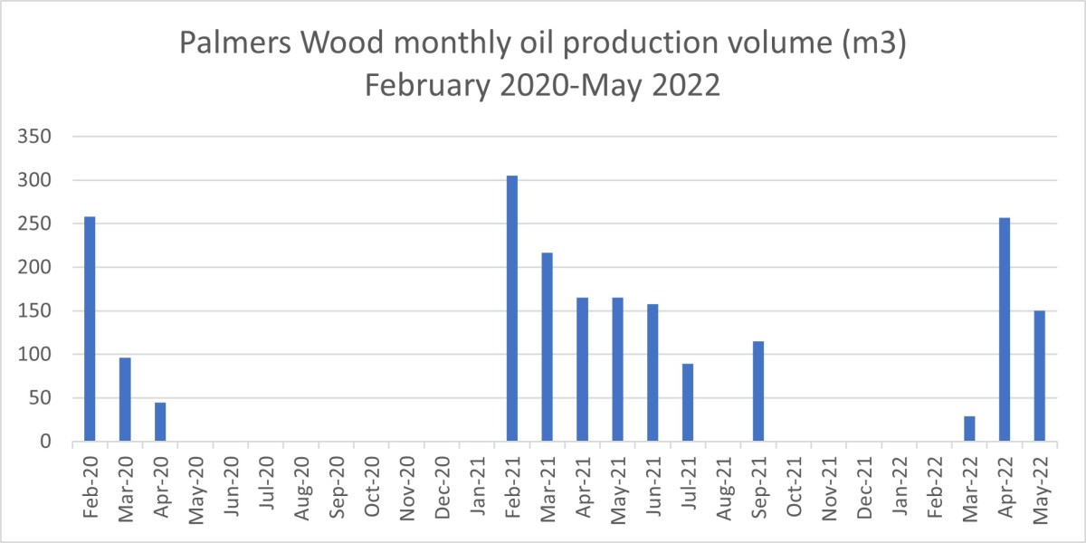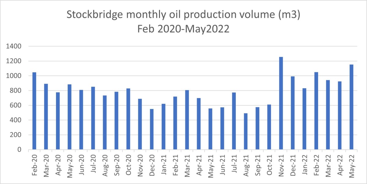 Another IGas site saw production rise 25% between April and May 2022. Oil in tonnes at Stockbridge in Hampshire rose from 770 in April to 961 in May. The rise took production back to above levels last seen in February 2022.