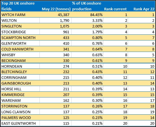 The top four producing UK onshore oil fields (Wytch Farm, Welton, Singleton and Stockbridge) all retained their leading positions in the top 20. But one saw a 30% fall in production, while another rose 25%.