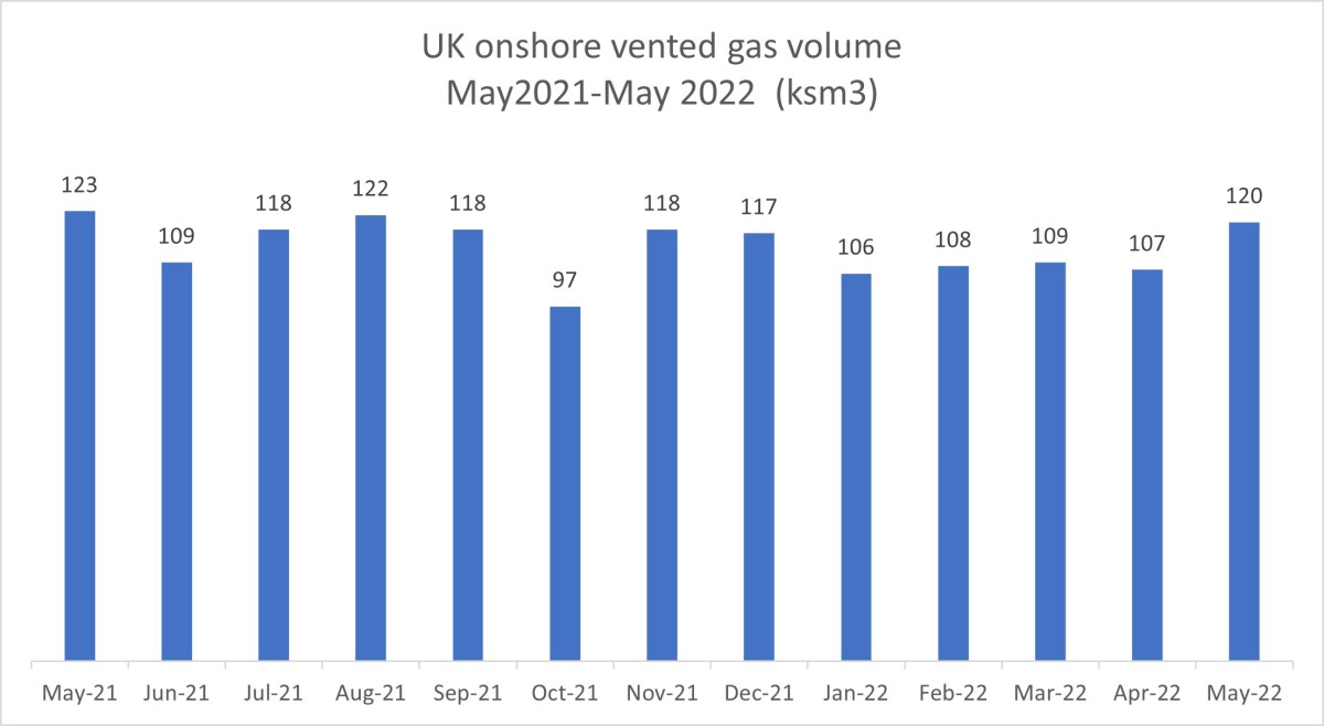 Volume of vented gas at UK onshore oilfields: 120m3