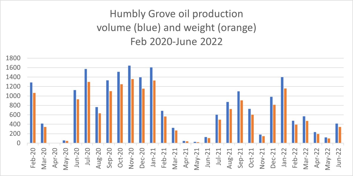 Humbly Grove, in Hampshire, continued its volatile production pattern, with a 243% increase in volume in June 2022, compared with May 2022. Oil production at the field is supported by the injection of gas which is stored underground in depleted hydrocarbon reservoirs.