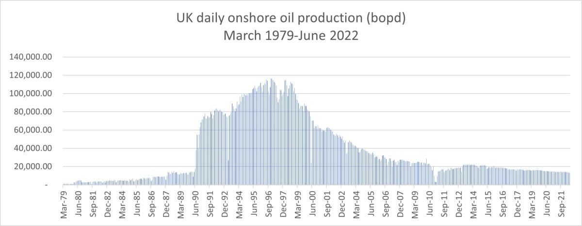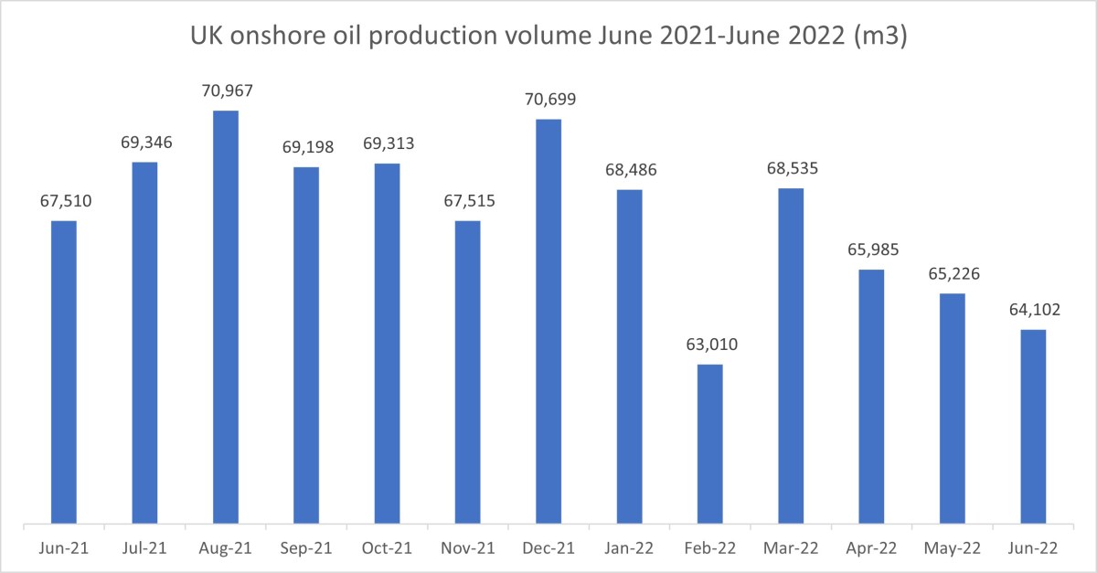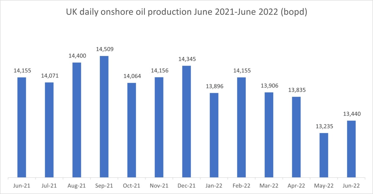 - The onshore contribution to total UK oil production was 1.93% in June 2022