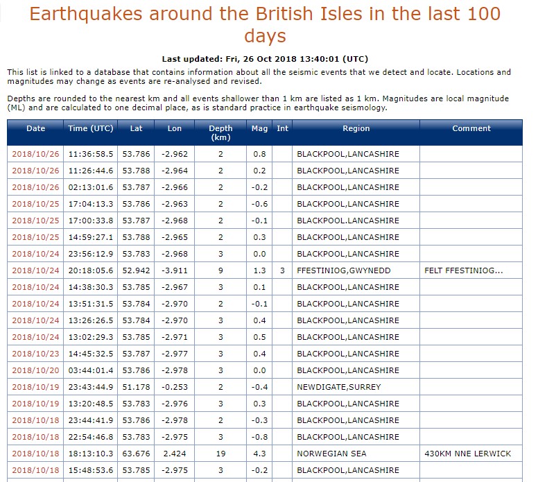 First seismic events recorded by the British Geological Survey in the area around Cuadrilla’s Preston New Road site and attributed to fracking Details
