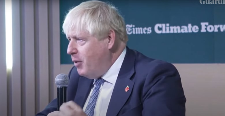 Boris Johnson speaking at a New York Times-Guardian event at the COP27 climate talks.