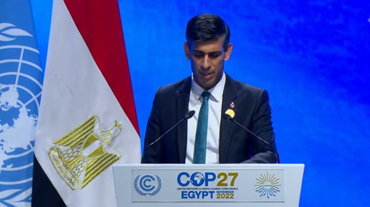 UK prime minister Rishi Sunak, speaking at COP27 on 7 November 2022.