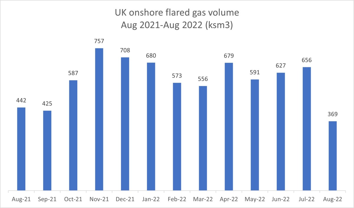 - Flared gas volume in August 2022 was the lowest since September 2020