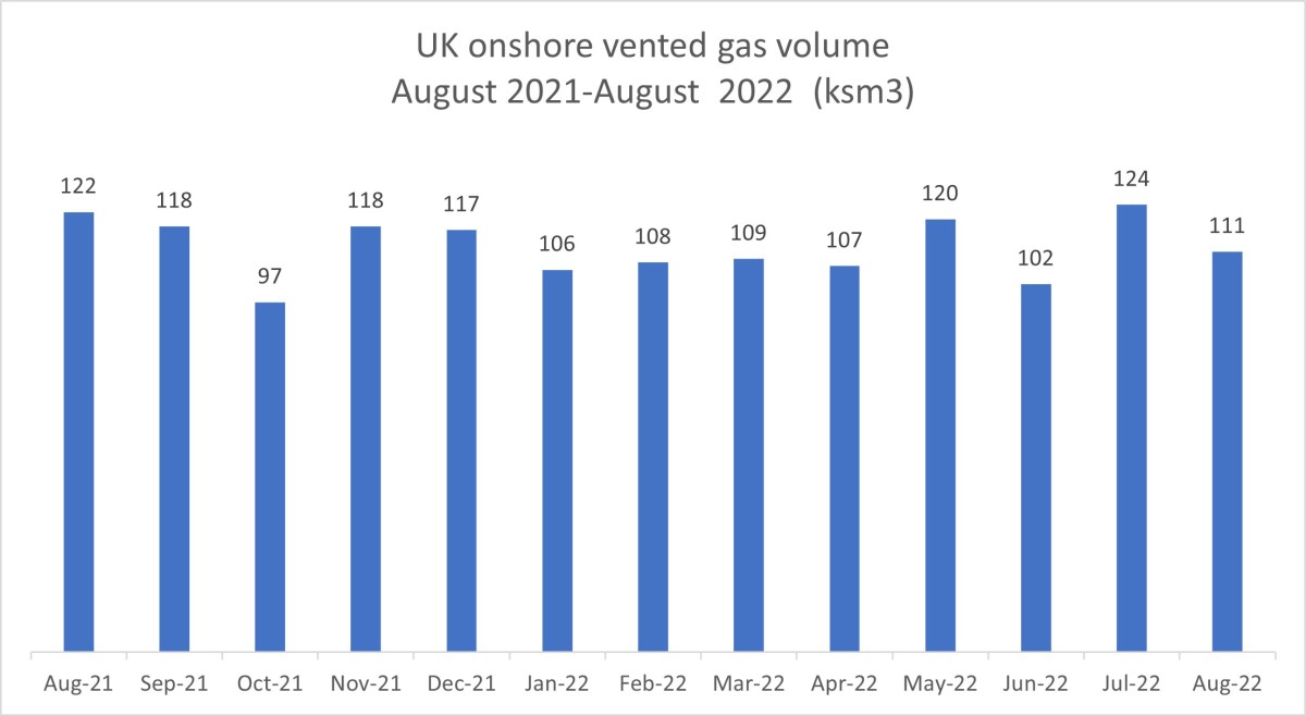 Volume of vented gas at UK onshore oilfields: 111m3