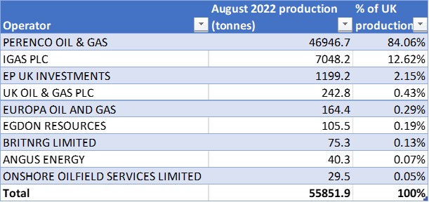 Oil production by IGas rose above 7,000 tonnes for the first time since May 2022. The increase in oil production in August 2022 at the Welton field contributed to the 7,048 tonnes produced by the company. IGas’s share of UK onshore oil production was down very slightly at 12.62% (12.67% in July 2022).